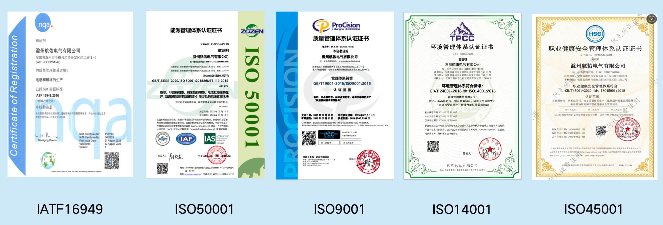 Quality is the cornerstone of Hangyou’s brand reputation. We have built a rigorous quality management system and obtained a full suite of international certifications to ensure compliance with global standards for safety, reliability, and sustainability: