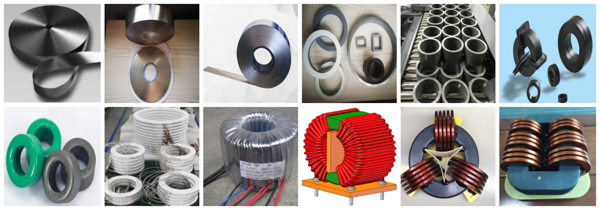 Nanocrystalline Magnetic Cores: Wound from 1K107B material, featuring high saturation magnetic flux density, high permeability, and cost advantages over permalloy, it is widely used in transformers, inductors, and communication devices.